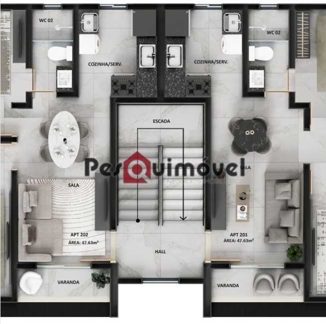 2 Dormitórios, sendo 2 suítes