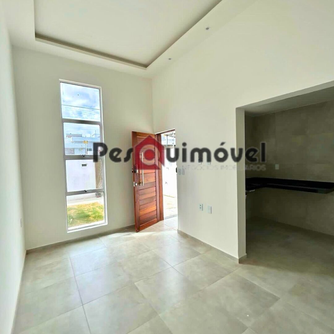 Compostas por 02 quartos, sendo 01 suíte, WC social, sala com pé direito duplo, sanca na sala e corredor com LED, casa toda em LED, toda no PORCELANATO, cozinha com bancada em L para cooktop, lavanderia coberta, quintal em L, garagem ampla, pré instalação para motor de portão, pré instalação para ar condicionado, kit porta pronta nos quartos e banheiros.